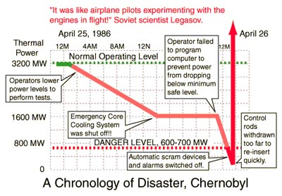 The first warning came in Sweden. At 9 a.m. on Monday, April 28, technicians at the Forsmark Nuclear Power Plant, 60 miles north of Stockholm, noticed disturbing signals blipping across their computer screens. Those signals revealed abnormally high levels of radiation, a sure sign of serious trouble. At first suspecting difficulties in their own reactors, the engineers searched frantically for a leak. When they found nothing, they lined up some 600 workers at the plant and tested them with a Geiger counter. This time the signals were even more alarming: the workers’ clothing gave off radiation far above contamination levels. Outside, monitors took Geiger counter readings of the soil and greenery surrounding the plant. The result showed four to five times the normal amount of radioactive emissions. Clearly, something was wrong — terribly wrong.”John Greenwald, Time Magazine, May 12, 1986.
